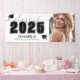 This classic yet modern graduation party banner is the perfect way to celebrate the Class of 2025. The design is arranged with the graduation details on the left side, featuring "Class of 2025" in bold black and white, accented with elegant grey script. Two graduation cap icons add a festive touch, while space below allows for the graduate’s name and school, creating a personalised centerpiece for the celebration.