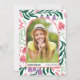 Class of 2025 boho arch and colourful retro folklore flowers Graduation Invitation. This unique design showcases a beautiful boho arch with customisable text. The background is adorned with branches and vibrant retro folklore flowers in shades of coral peach and lilac purple, accented with dark and mint green leaves. The phrase 'Grad Party' is highlighted in bold typography. On the back, you can include a special photo of the graduate within the arch.