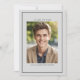 This elegant graduation invitation features a sophisticated and minimalist design, perfect for celebrating the achievements of any graduate. The front of the invitation showcases a customisable photo template framed by a sleek dark grey border, with easily personalised text for the graduation year and the graduate's name. Simply click "Personalise this template" to easily change the sample text. The background of the invitation is a subtle grey, adding a touch of modernity and class. The back of the invitation continues the theme with the same dark grey frame and subtle grey colour and provides a stylish template layout for details such as the graduate's name, date, time, location, and RSVP contact information. This versatile and stylish invitation, with its classic and clean design, is a timeless choice for any graduate looking to announce their milestone in a tasteful and memorable way.