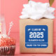 These deep blue and white favour stickers say 'Class of 2025' in large white text. (You can change the year if necessary.) At the bottom, there's white display text you can change to show the correct name for the graduate. White graduate's caps are on either side of the phrase "Class Of". You can also edit the custom message for your guests. (Shown: Thank You For Coming)