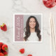 Celebrate your high school graduate in style with photo graduation party napkins. Simple design features a portrait photo of the grad with with custom text in a handwritten style. Rose pink background colour can be customised to match school or party colours.