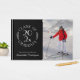 Create a wonderful keepsake for your graduate with a classic graduation guestbook featuring their name, photo, graduation year, and school. Customise the year for a chic, white on black typography emblem which reads: CLASS OF [YEAR] GRADUATE with the words curving around the year in the middle with curved botanical leaves along each side of the circular design. Add your grad's photo, name, high school or college name, graduation date, and text for a unique gift.