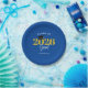 This blue personalised paper plate is a perfect accent for any graduation party. The gold and white text reads: Class of 2025 Grad. A black mortarboard sits on top of the zero in the year.