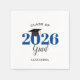 Use this personalised graduation napkin at your grad party celebration! The modern blue and black design offers custom text for the name of the graduate. The text reads: Class of 2025 Grad. The design is accented with a black graduation hat.