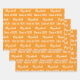 The wrapping paper sheets are orange. All of them have a text pattern for the graduate's name and Class of 2025. The name (Shown: Elizabeth) appears in an elegant white script. The other text is also white. All of the text can be edited.