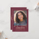 This elegant and festive 4.5" x 6.25" Photo Graduation Party Invitation and Announcement features the words "2025 Grad" in a modern, gold (simulated foil) font. There is a custom photo area for your picture of the graduate. The background is maroon, but can be changed to any colour of your choice (black, main school colour, etc.). The celebration details are on the back with matching "Let's Celebrate" gold text. Party details can be easily customised for your special event. A beautiful and simple way to invite guests to celebrate a graduation.