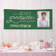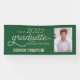 This elegant and festive 2.5' x 6' Photo Graduation Banner features the words "Class of 2025 Graduate" showing in a gold (simulated foil) script font. There is a custom photo area for your picture of the graduate. The background is green, but can be changed to any colour of your choice. The celebration details can be easily customised for your special event (such as name of high school). A beautiful and simple way to celebrate a graduation.
