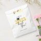 This simple personalised graduation favour bag is a perfect way to say thank you to your guests. The stylish design features black and gold text on a white background. The text reads: Class of 2025 Thank You. A black grad hat sits on top of the zero in the year.