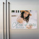 Celebrate the grad with our stylish horizontal photo graduation magnetic card. The graduation announcement magnet displays the graduate's landscape photo with "Class of 2025" in a green modern calligraphy script overlay. Personalise the modern graduation magnet by adding the graduate's name and school name. The design is perfect for both high school and college graduates.