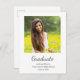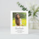 Class of 2025 Graduation announcement postcard, with a simple photo and an elegant script typography design. With grey customisable lettering, you can add your name and date. You also change the photo with your own image. Great for congratulating that special special graduate.