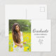 Modern Class of 2025 Graduation announcement postcard, with a simple photo and an elegant grey script typography design. With grey customisable lettering, you can add your name and date. You also change the photo with your own image. Great for congratulating the special special graduate in your life.