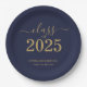 Class of 2025 Navy Blue Gold Graduation Party Paper Plate