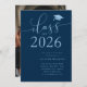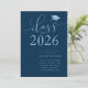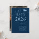 Elegant and simple graduation party invitation template for high school or college graduates! The typography text against the navy background says "Class of 2025" in modern script font. Customise this product by adding the graduate's name, school, and party information.