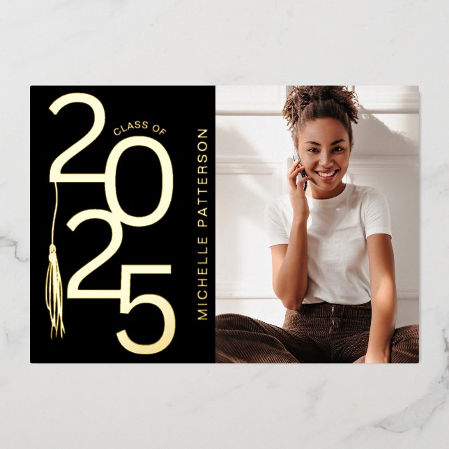 Class of 2025 Photo Graduation Gold Foil Announcement card.
