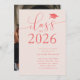 Elegant and simple graduation party invitation template for high school or college graduates! The typography text against the pink background says "Class of 2025" in modern script font. Customise this product by adding the graduate's name, school, and party information.