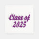 Graduation paper napkin with Class of 2025 in 3D purple text. Available in several styles and sizes.