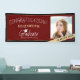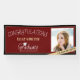 This classic graduation banner features a photo frame for a picture of the graduate. The background is dark red with accents of light gold.