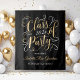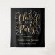 Stylish graduation party photo backdrop features an elegant faux gold foil design in script with pretty scroll accents. Includes elegant custom gold and white coloured text that can be personalised with the graduate's name and a a message of Congratulations. Note, the black background can be customised.