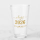 Stylish elegant custom graduation party supply! Celebrate the graduate's accomplishment in style with this trendy graduation glass. Design features "Class of 2026" in gold font on a clean white background. Personalize this product by adding the name and school name. Easy to customize. Matching graduation party supplies available. Congratulations on your awesome achievement!