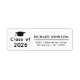Elegant White graduation return address label featuring a black grad cap and the graduate's name and address in modern .