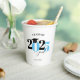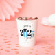 This paper cup features a modern light blue and black class of 2026 design. It offers custom text for the name of the graduate or the school name. The design is accented with a black graduation hat.