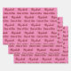 The wrapping paper sheets are pink. All of them have a text pattern for the graduate's name and Class of 20xx. The name (Shown: Elizabeth) appears in an elegant dark red script. The other text is also dark red. All of the text can be edited.