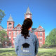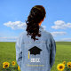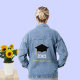 Black graduation cap and graduation year number Denim Jacket. Text can be personalised.