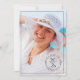 Send out modern graduation announcements featuring your grad's photo on the front with a chic circular navy blue typography emblem which reads: CLASS OF [YEAR] GRADUATE in the lower right corner. A fine navy rectangle creates a border near the edge. On the back, the emblem and thin dark blue rectangle repeat with the graduate's name in a navy script font and their school in a sleek serif font below the symbol on a white background. Add your photo and customise the year, name, and school in the sidebar. Personalise it for any type of graduate: high school, college, graduate school, law school, medical school, or trade school.