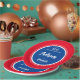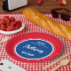 All type in white on a blue background. Red and white border. The red and blue can be converted to your school colours very quickly and easily. Once personalised, if you "click to customise further", you can use Zazzle's easy design tool to modify. Please feel free to message me with questions. Happy to help!