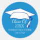 Decorate your graduation invitations and graduation announcements with these cornflower medium blue and white envelope seals. They feature a white graduation cap at the top. Then the phrase Class of 2017 is written below. Along with the graduate's name is chic capital letters and their high school below. You can easily personalise the text, change the colour and the size. You can even change the background colours to match your school colours or graduation party decor.