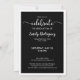 Send elegant, modern graduation party invitations for your graduate's celebration featuring a bold white cursive typography design which reads: "class of [YEAR] Graduate" above your grad's name on a black background with a white border. Customize the year and name on the front and replace the sample text on the back of the invite for your grad and event. The back features the word "celebrate" in a white script font and also has a white border. Personalize it for any type of graduate: high school, college, graduate school, law school, medical school, or trade school.
