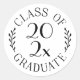 Chic black on white typography emblem reads: CLASS OF [YEAR] GRADUATE with the words curving around the year in the middle with curved botanical leaves along each side of the circular design. Customise the year in the sidebar. Great for graduation gift wrapping and envelope seals.