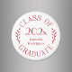 Chic red on white typography emblem reads: CLASS OF [YEAR] GRADUATE with the words curving around the year and your graduate's name or school in the middle with curved botanical leaves along each side of the circular design. Customise the year and name in the sidebar. Makes a fun graduation gift.