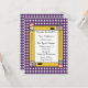 An invitation featuring a purple gingham background on front and back. Front features yellow pencils arranged in a rectangle shape with white centre. Personalise with details of your occasion.