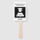 This fun hand fan is designed for a class reunion featuring a black artwork graduate with rolled scroll. The text and background are in black and white. Fill in the personal information template fields, remove any text or click customise to select a typeface colour, size, and style your prefer.