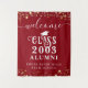 Welcome alumni to their high school or college class reunion (editable for any year reunion) with this custom colour tapestry to be used as a sign or photo op backdrop featuring gold stars, string lights, calligraphy script and decorative typography and personalised with your school name and graduating class year. The colours (shown in red, gold and white) can be changed to your school colours or coordinating party theme colours in EDIT. TAPESTRY OPTIONS: The sample is shown in the 50x60" size--other sizes are available on the ordering page. ASSISTANCE: For help with design modification or personalisation, colour change, resizing or transferring the design to another product, contact the designer BEFORE ORDERING via the Zazzle Chat MESSAGE tab below or email makeitaboutyoustore@gmail.com.