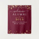 Create a class reunion or all school welcome sign, party decoration or photo op backdrop featuring the title WELCOME ALUMNI in a modern handwritten script typography, editable class year and name of your school, college or university or other custom text accented with gold stars against an editable burgundy maroon background you can change to your school colour. Designed to be reusable for future reunions. CHANGES: Change the background colour or any text font style, size, colour, spacing and placement in EDIT. TAPESTRY OPTIONS: The sample is shown in the 50x60" size--other sizes are available on the ordering page. ASSISTANCE: For help with design modification/personalisation, colour change, resizing, transferring the design to another product or if you would like coordinating items, contact the designer BEFORE ORDERING via Zazzle Chat or makeitaboutyoustore@gmail.com.