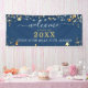 Create a class reunion welcome banner sign featuring the title WELCOME in a modern calligraphy script typography, Class of Year and name of your school, college or university alumni or other custom text with gold stars and string lights in your choice of text and background colours (shown in blue, gold and white) you can change to school colours or party theme colours in EDIT. BANNER OPTIONS: The sample is shown in the 2.5x6' indoor style--other sizes and "outdoor" are available on the ordering page as well as the option of transferring the design to a foam board, poster, tapestry or other product or have the designer convert it to a DIGITAL DOWNLOAD file before personalising it for printing locally. ASSISTANCE: For help with design modification/personalisation, colour change, resizing, transferring the design to another product or if you would like coordinating items, contact the designer BEFORE ORDERING via Zazzle Chat or makeitaboutyoustore@gmail.com.