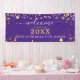 Create a class reunion welcome banner sign featuring the title WELCOME in a modern calligraphy script typography, Class of Year and name of your school, college or university alumni or other custom text with gold stars and string lights in your choice of text and background colours (shown in purple, gold and white) you can change to school colours or party theme colours in EDIT. BANNER OPTIONS: The sample is shown in the 2.5x6' indoor style--other sizes and "outdoor" are available on the ordering page as well as the option of transferring the design to a foam board, poster, tapestry or other product or have the designer convert it to a DIGITAL DOWNLOAD file before personalising it for printing locally. ASSISTANCE: For help with design modification/personalisation, colour change, resizing, transferring the design to another product or if you would like coordinating items, contact the designer BEFORE ORDERING via Zazzle Chat or makeitaboutyoustore@gmail.com.