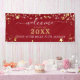 Create a class reunion welcome banner sign featuring the title WELCOME in a modern calligraphy script typography, Class of Year and name of your school, college or university alumni or other custom text with gold stars and string lights in your choice of text and background colours (shown in red, gold and white) you can change to school colours or party theme colours in EDIT. BANNER OPTIONS: The sample is shown in the 2.5x6' indoor style--other sizes and "outdoor" are available on the ordering page as well as the option of transferring the design to a foam board, poster, tapestry or other product or have the designer convert it to a DIGITAL DOWNLOAD file before personalising it for printing locally. ASSISTANCE: For help with design modification/personalisation, colour change, resizing, transferring the design to another product or if you would like coordinating items, contact the designer BEFORE ORDERING via Zazzle Chat or makeitaboutyoustore@gmail.com.