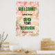 School reunion welcome sign poster with festive celebration party lights photo background and fully editable text. Change school name, year, etc. Change text color to your school colors if desired. Poster may be mounted to a board or easel for entrance to your event.