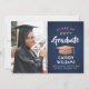 Announce a high school or college graduation and invite family and friends to celebrate with custom photo navy blue and copper colour party invitations. The picture and wording are simple to personalise and the colours are easy to change with the Zazzle design tool. This downloadable template is set up as a combination announcement card and party invitation that can be customised with any details of your choice, such as parents' names, special honours, degree title, favourite inspirational quote, graduate's future plans or new address. The design features a navy blue ombre background, faux copper foil mortar board cap, elegant modern calligraphy, classic vintage typography and one favourite photo, such as a senior picture or an image from the commencement ceremony. Please note that copper is muted orange colour, not metallic foil. This printable graduation card is a stylish way to announce a special day celebration. Congratulations to the graduate!