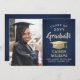Class Year Navy Blue and Gold Graduation Photo Invitation