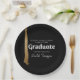 Personalise these graduation paper plates with the graduate's name, school and class Year. Impress your guests with this sophisticated design featuring black, white and gold grad cap tassel.