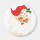 This mid-century vintage Christmas magnet features a smiling Santa Claus, in bright red and white, with a twinkle in his eye, rosy cheeks and red hat.
