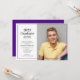 This classic graduation party invitation features a photo and custom text for your graduation party details. The design is accented with the color purple.