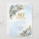 Classic 80th Birthday Elegant Dusty Blue Gold Invitation