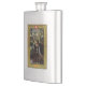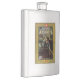 The product is a good size and came exactly as it was pictured. The lid is not attached to the flask, which could be dangerous on drunken nights... The print came out surprisingly well and looks very sharp. Would definitely recommend.