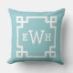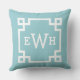 Classic Aqua Greek Key Monogram Initial Cushion