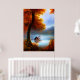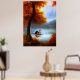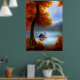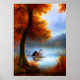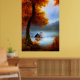 Classic Autumn a hut a Lake trees crimson leaves Poster